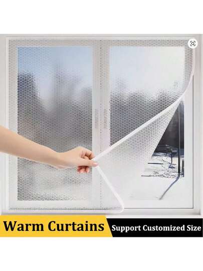 1 件冬季窗户隔热保暖窗帘防风隔音密封膜自粘气泡隔热膜可拆卸门帘 - 白色白邊 - 查看 1