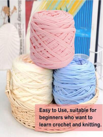 1卷T恤纱,码弹性面料钩针布T恤纱,厚手工编织涤纶面料丝带,用于钩编包、篮子、毛毯、地毯、家居装饰、DIY工艺品 - 彩色 - 查看 6
