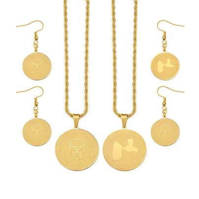 一套瓜德罗普岛地图吊坠项链耳环首饰套装(女士款) - 彩色 - 查看 8