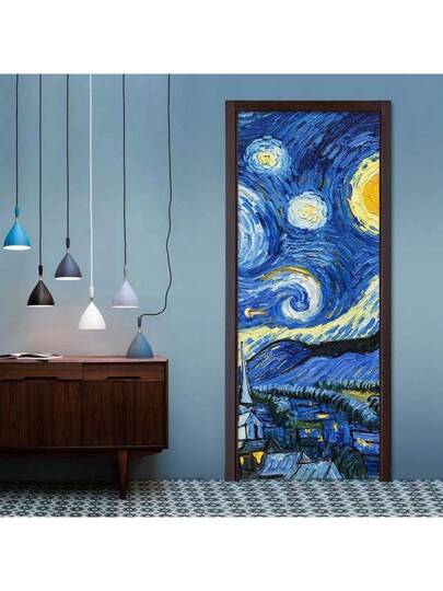 1 對/2 件自黏防水防污門貼,帶有復古鄉村風格抽象油畫圖案的藍色星星,適合室內外牆壁、衣櫃、櫥櫃裝飾 - 藍色 - 查看 6