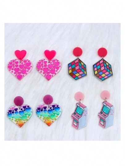 1對女性情人節粉色愛心形耳環,採用甜美彩虹風格,是新娘、派對和舞會的精美珠寶飾品 - 女款 - 查看 6