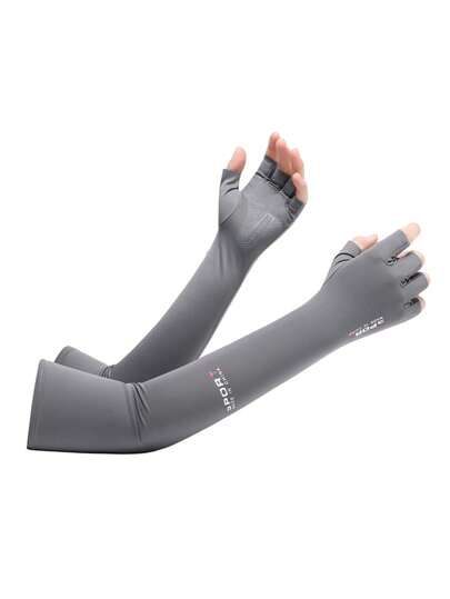 1雙防紫外線防曬霜半指手套帶袖子 - 灰色 - 查看 1