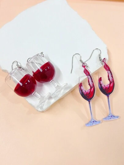 1對別緻時尚的香檳杯和流動的酒印花樹脂耳環,適用於情人節、派對、假期和約會,是送給朋友的最佳禮物 - 彩色 - 查看 11