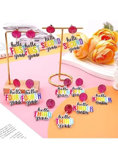 1雙彩色亞克力字母懸垂耳環 - 第三 - 查看 1