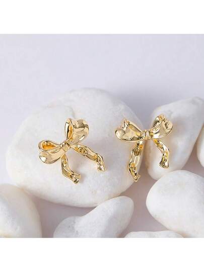 1 對優雅蝴蝶結設計女用耳環,多功能珠寶 - 金色 - 查看 1