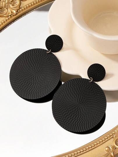 一对夸张个性化极简金属大号耳环 - 黑色 - 查看 1