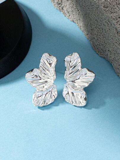 1 对时尚哑光花朵元素耳钉,适合旅行、海滩、派对、户外活动情人节、妈妈、母亲、母亲节、礼物 - 銀色 - 查看 1