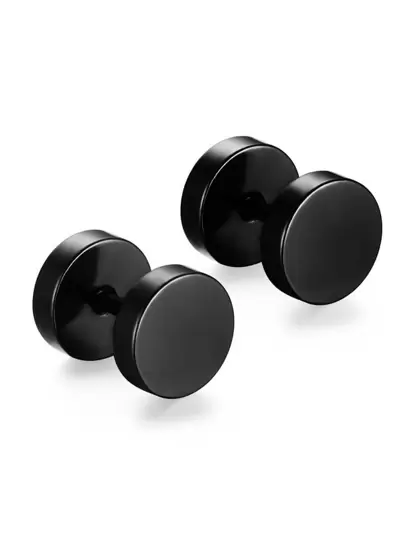 1雙時尚不銹鋼圓形圓片&杠鈴造型耳釘適合男人及女人,合適的適用於日常穿著 - 黑色 - 查看 1