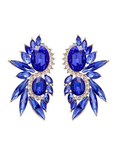 juran 1對玻璃鑲嵌鑽石裝飾優雅女式耳環,適用於約會之夜,珠寶禮物 - 寶藍色 - 查看 1