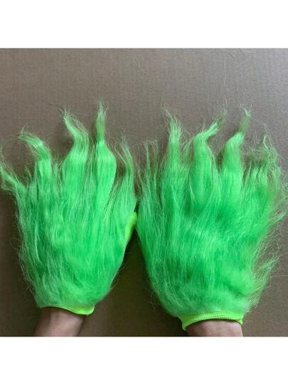 1双绿色毛绒手套,适合派对、节日佩戴 - 薄荷綠 - 查看 1
