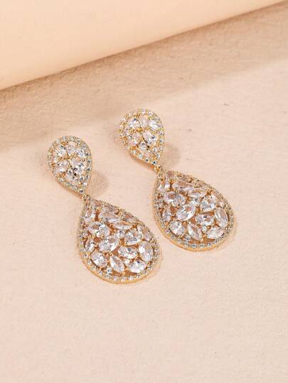 1對奢華立體鑽石長吊墜耳環,適用於婚禮晚會珠寶飾品 - 金色 - 查看 1