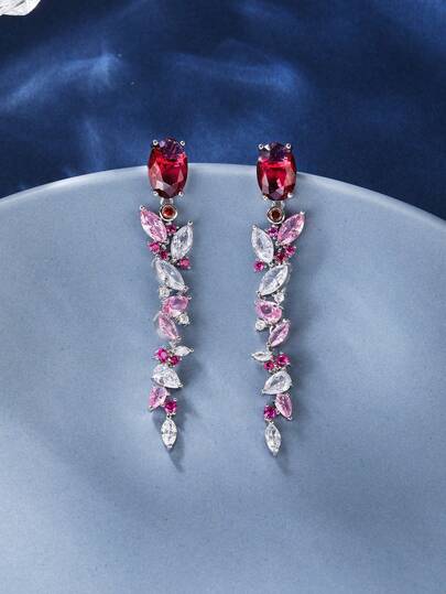 1對豪華時尚的立體綫鑲鋯流蘇耳環,適合女性穿搭時尚和派對服裝 - 紅色 - 查看 1