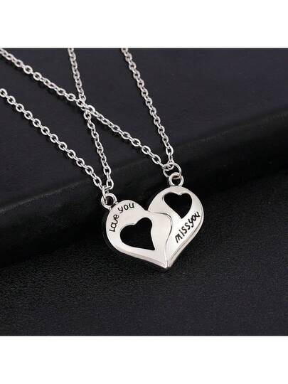 1對時尚心形愛情記憶投影項鍊,含100種語言的「我愛你」十字頸鏈,適合情侶日常佩戴 - 1對心形吊墜十字鏈條項鍊 - 查看 10