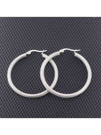 1 對銀色時尚簡約不銹鋼花朵細部圈形耳環,適合日常使用,採用真空電鍍技術 - 銀色 - 查看 1