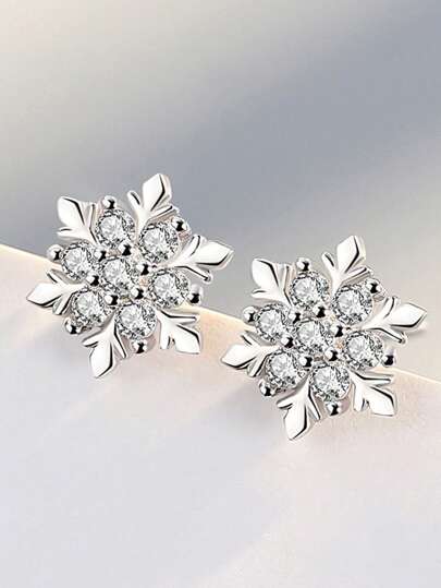 1雙簡約風925純銀雪花耳釘,個性化時尚耳環適合女士作為A禮品
