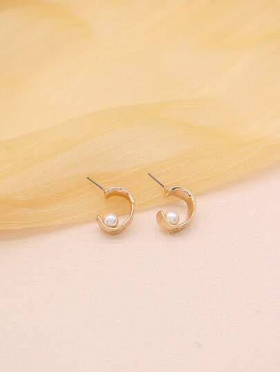 1對簡單時尚打擊金屬C設計人造珍珠耳環,適合女性日常和節日穿著 - 金色 - 查看 1