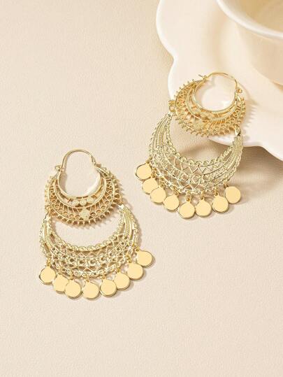 1雙復古波西米亞風風格長款流蘇有圖案的耳環 - 金色 - 查看 1