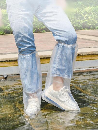 1雙防水塑膠雨鞋極簡透明耐磨一次性雨鞋套 - 無色 - 查看 1