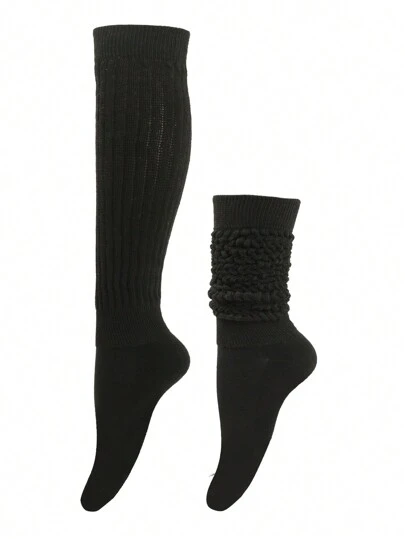 1雙女士厚綿絨兔毛絨球襪子,長筒腿暖器 - 黑色 - 查看 1