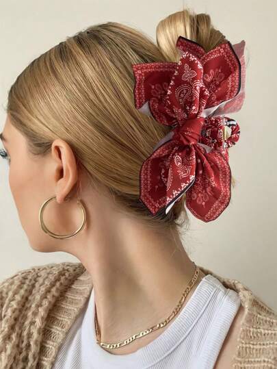 1个腰果花蝴蝶结发夹,波西米亚风格,适合度假和各种节日拍照。发爪夹、发夹、发卡、发 ...