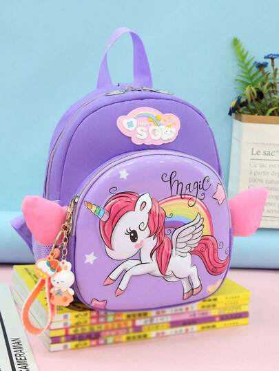 1个可爱卡通背包,适合小学和初中女生,轻便小马图案设计,减轻负重,配有兔子挂件,是开学季必备单品