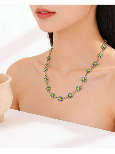 1件装 时尚夏季滴油花朵链项链