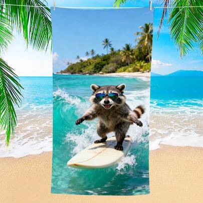 1条浣熊图案沙滩巾,超强吸水超大尺寸沙滩毯,适用于沙滩、泳池、旅行、露营、瑜伽等场合,多种尺寸可选。