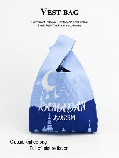 1个纯色镂空针织轻便可折叠休闲手提包腕包,适合女性/女孩日常、度假、上学、通勤,四季皆宜。