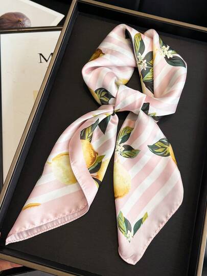 1条女士优雅复古时尚柠檬树印花轻盈缎面方形仿丝巾,波西米亚复古休闲女士颈巾、披肩、轻薄舒适头巾,适合春夏日常穿着、外出、海滩、度假。