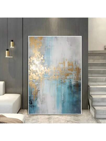 1 件,帆布挂画,带框装饰画,海报,墙面艺术,白色蓝色金色点缀墙面装饰,抽象帆布墙面艺术,现代纹理印刷画,适用于客厅和卧室装饰 - 彩色 - 查看 1