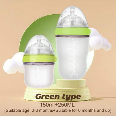 1个150毫升/250毫升硅胶婴儿奶瓶,防摔耐热,宽口设计,适合0-6-12个月的婴儿 - 彩色 - 查看 1