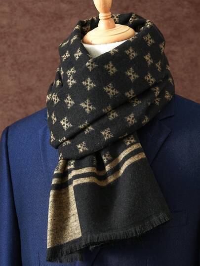 1 件 180*30 厘米商务围巾,时尚流苏围脖,经典格子围巾,男士奢华围巾,中性披肩,印花围巾 - 彩色 - 查看 1