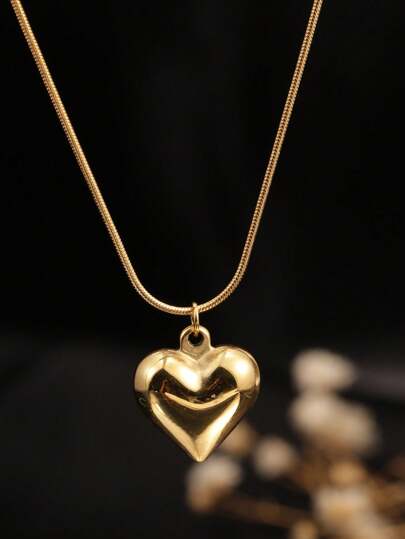 1 件 18k 金不锈钢简约抛光心形吊坠项链,适合女士,可调节,百搭,时尚优雅,适合日常佩戴,送给女友、妻子的礼物 - 金色 - 查看 1