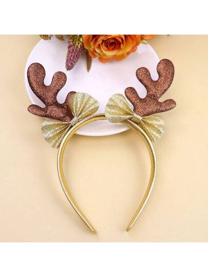 1个21厘米 x 17.5厘米闪光鹿角发箍,闪光鹿角设计,鹿角形状带蝴蝶结发饰,圣诞节鹿角发箍,适合庆祝活动 - 金色 - 查看 1