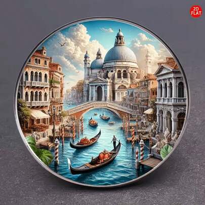 1枚2D平面胸针,描绘威尼斯运河景色,独特创意翻领别针,适用于背包、衣服、衣领和帽子。