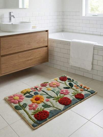 1 件装 2D 草莓图案防滑垫,浴室防滑垫,门垫,超柔软仿羊毛地毯,适用于卧室、浴室、厨房、玄关等场所,室内/室外均可使用,可机洗,精美礼品 - 彩色 - 查看 10