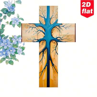 1件 2D复古彩色图案十字架木质墙饰,农舍风格艺术标志,海报风格艺术原木,适用于客厅、办公室、咖啡馆,可作礼物、节日装饰、室内外装饰、家居用品,尺寸20.32x30.48厘米,2D平面