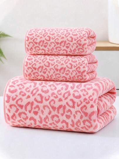 1件/2件/3件装奢华粉色豹纹毛巾套装 - 提花珊瑚绒面料,超柔软绒面毛巾,是打造大胆家居装饰和水疗环境的理想之选