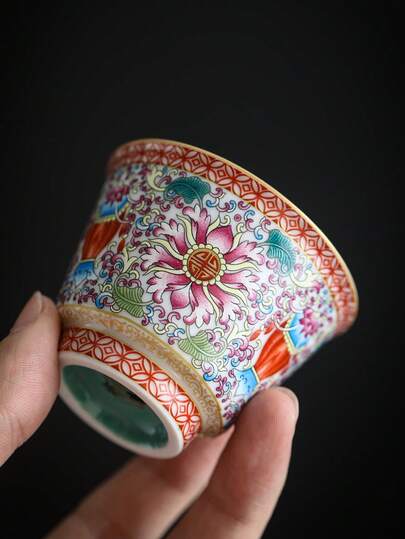 1/2/4个珐琅莲花茶杯,陶瓷材质,奢华复古精致家用茶杯,中式功夫茶道茶杯,陶瓷青花中号大师杯,适合日常茶会,沙特咖啡,节日馈赠朋友 - 彩色 - 查看 1