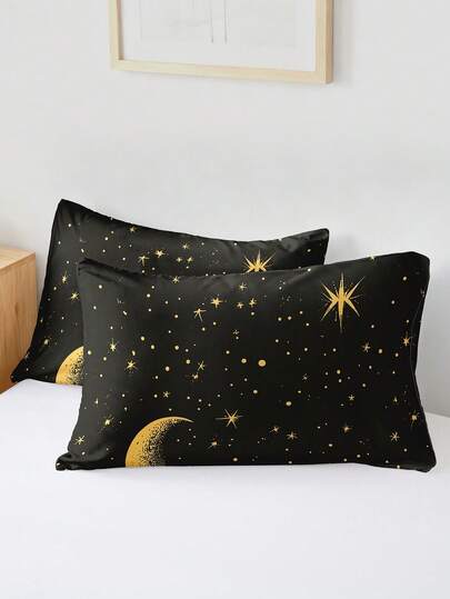 1件/2件/4件装涤纶星月图案枕套(不含枕芯),柔软舒适,四季皆宜 - 彩色 - 查看 1