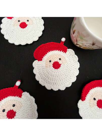 1个/2个钩针编织圣诞老人圣诞杯垫 - 手工制作耐热饮料垫,防滑杯垫,适用于咖啡/茶,节日圣诞家居厨房装饰及礼品,手工钩针编织圣诞老人圣诞杯垫 - 耐热防滑杯垫,节日餐桌装饰,适用于圣诞派对/家庭/办公室,独特的节日礼物 - 彩色 - 查看 4