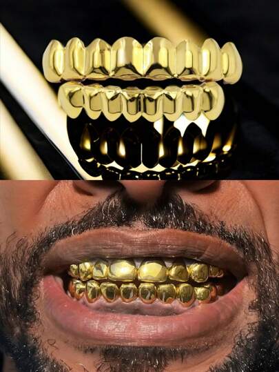 ZEIRLLZ 1件/2件套18K镀金嘻哈牙套,闪亮夺目,8颗金牙,适合复活节、万圣节派对,男女通用 - 彩色 - 查看 11