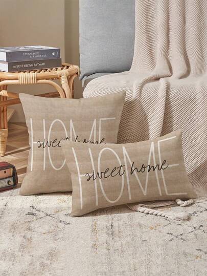 1/2 件装“温馨的家”亚麻腰枕套,米色底黑色字样,厚实面料,适用于沙发和床,可机洗,拉链封口,现代风格,装饰枕套 - 彩色 - 查看 14
