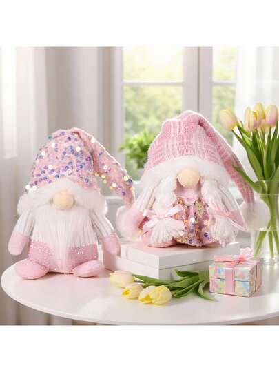 1 件/2 件新款北欧侏儒雕像、粉色弯帽无脸老人雕像、圣诞派对场景装饰道具、卡通工作服森林矮人装饰、家居客厅桌面装饰、派对装饰、橱窗装饰、农舍装饰、礼物 - 粉色 - 查看 2