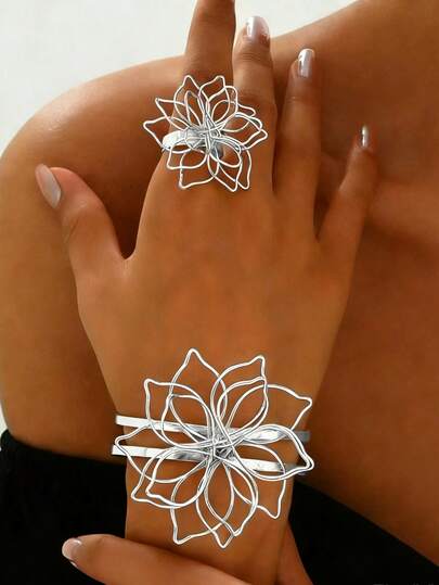 1件/2件套,花卉图案,铁丝材质,欧美风格,创意设计,手链/戒指套装,女士,日常佩戴,派对装,婚礼,母亲节礼物,斋月活动