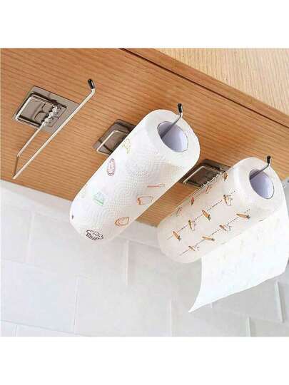 1件/2件套厨房懒人湿巾架,不锈钢保鲜膜挂钩,免手持毛巾纸巾架,浴室免钻孔 - 彩色 - 查看 1