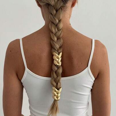 1个/2个装女士编织金属发圈 - 高级弹力发绳,带马尾钩,多功能后脑勺发饰,橡皮筋发圈,夏季、假日、旅行