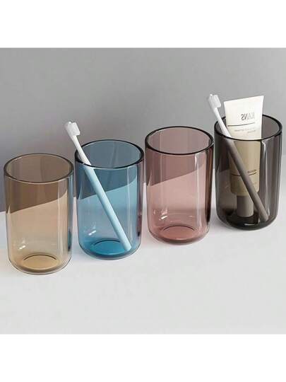 1个300毫升透明漱口杯,简约牙刷杯,创意情侣个性化牙刷杯,加厚家用杯,麦秆杯,塑料洗脸盆杯,漱口杯,莫兰迪色彩系列杯,INS风格杯 - 彩色 - 查看 1