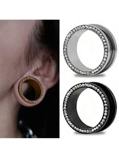 1个316不锈钢圆形耳扩 - DIY人体穿刺饰品,低过敏性耳廓扩张器,适合女性,夏季节日及日常佩戴