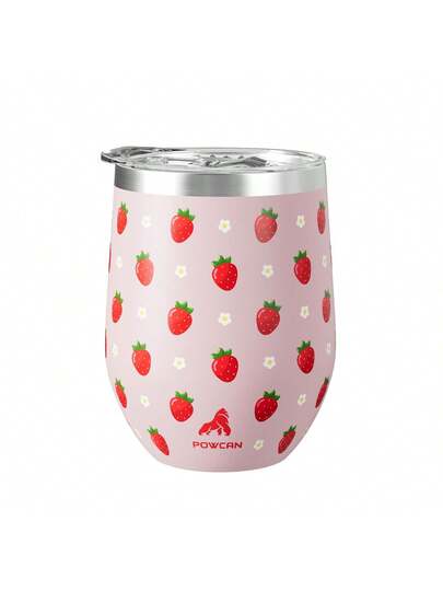 1个340毫升/12盎司双层不锈钢真空保温蛋形杯,适用于居家、办公、户外旅行、运动,也可作为礼物赠送。 - 粉紅色草莓 - 查看 1